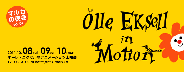 神戸で北欧のグッズを取扱うショップ「Markka」で、アニメ「Olle Eksell in Motion」の上映会が行われます。ちょっとお酒を飲みながら、北欧グッズの話に盛り上がる夜会をお楽しみ下さい!