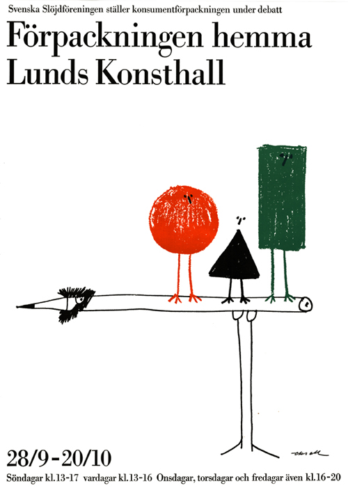 南スウェーデンのルンド・ギャラリー(Lunds Konsthall)で開催された「家庭のパッケージ」展示会のポスター。オーレ・エクセルが企画から開催までの全てを担当した思い出深い仕事のひとつです。