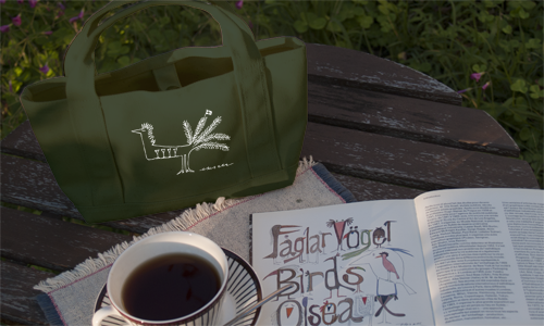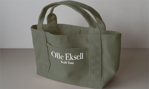 正面には、Olle Eksell(オーレ・エクセル)の名前とカフェトートの文字が、背面には、鳥のイラストがほどこされています。