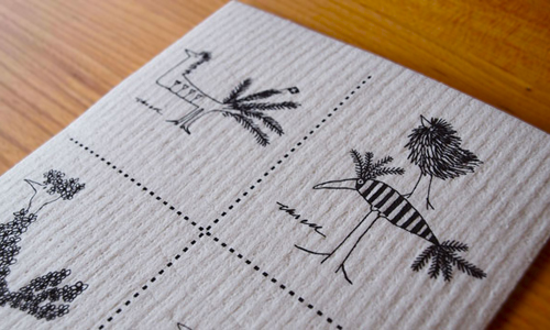 「人間を書くのは難しいけれど、鳥ならキャラクター性を持たせて自由に書く事ができる」と語り、たくさんの空想の鳥を描いたオーレ・エクセル。そんな自由な発想から生まれた鳥達のデザインがスポンジワイプになりました。